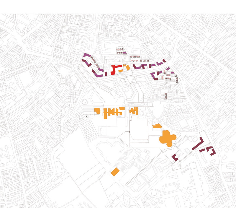 Le désenclavement du commence par la révision du plan de transports publics avec une restructuration globale du maillage routier et piéton afin de créer des liens entre différents quartiers. L’attention portée aux espaces publics leur redonne une lisibilité ainsi qu’une identité dont bénéficie l’ensemble du secteur.